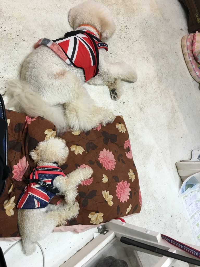 急いでシャンプーしたらしくてシャンプーの香りがして(ただし人間用)、ノミよけ首輪(ついでに言うと、コレは意味ないです)もしてたけど、